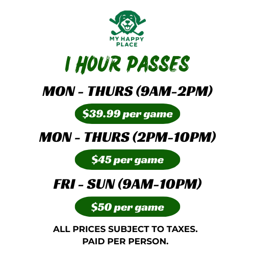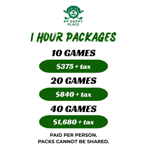 Your new getaway is here. Step into My Happy Place, Ottawa’s newest indoor golf experience, and swing your way through world-class courses with pro-level accuracy and unreal realism. Whether you’re perfecting your drive, playing a full round with friends, or trying golf for the first time, our state-of-the-art simulator delivers an immersive and confidence-boosting experience every time. With high-precision ball tracking, multiple stunning course options, and a comfortable private bay for up to four players, this is your spot to relax, reset, and have fun any day, any weather. Ready to play? Book your simulator time below!